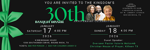 Grace, Grace Kingdom Family! We are 3 months away from celebrating the Kingdom of God Christian Center's 30th year Anniversary!